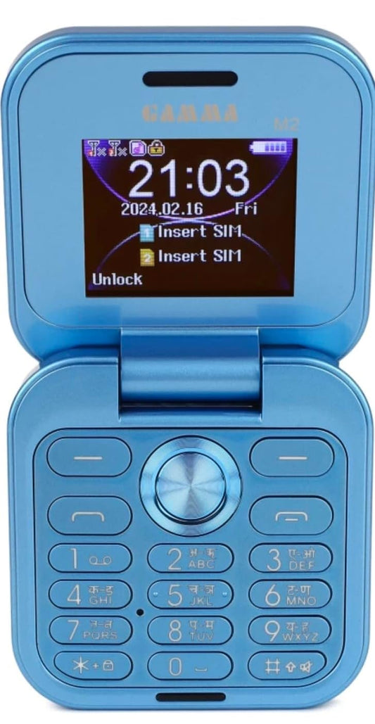 Gamma M2 Flip Keypad Phone with Magic Voice System (Blue)(New Sealed Pack)