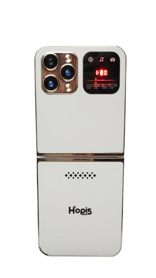 Hopi5 HI1 Flip Phone with Magic Voice System (White-Gold)